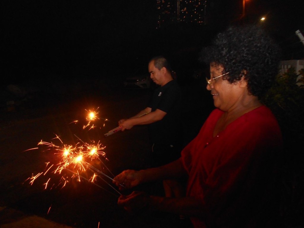 We all took turns lighting sparklers and small fireworks, filling the night air with excitement and bursts of color. The children squealed with delight, while the adults couldn’t help but smile, caught in the infectious happiness of the moment. The crackling sound of fireworks and the glow of sparklers in our hands created a truly festive atmosphere.
