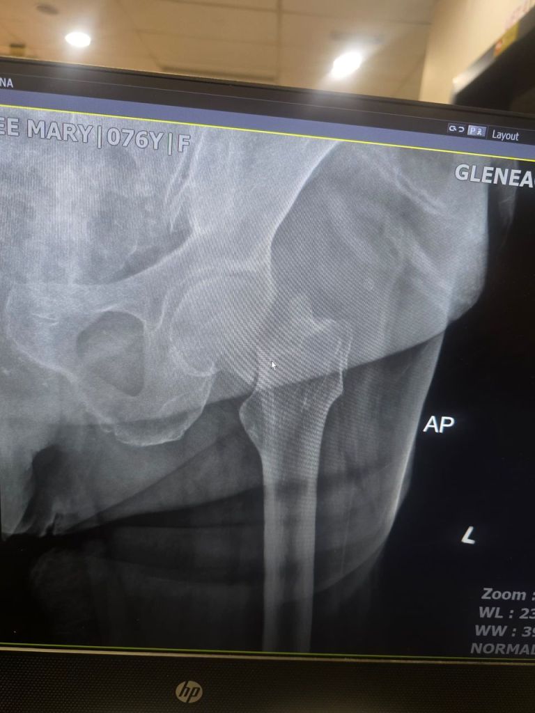 Thank God she was awake and aware, though clearly in pain. At the Emergency Department, we got her x-ray done right away and the news hit hard. A fractured neck of femur.